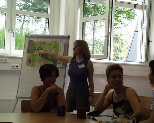 Tanja (SB) erklärt dem Plenum, wo's am Ausflugstag langgeht... |